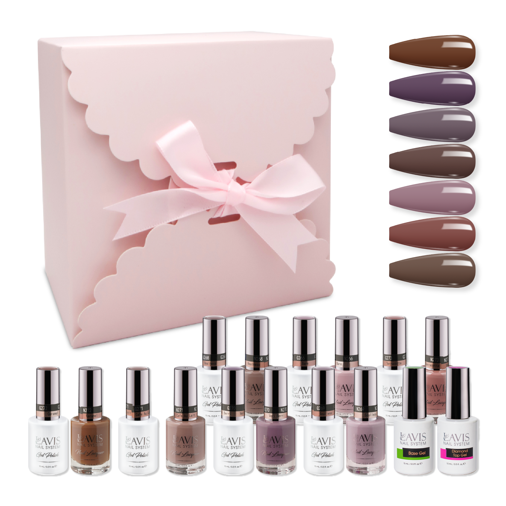 LAVIS Holiday Gift Bundle Set 18: 7 Gel & Lacquer, 1 Base Gel, 1 Top Gel - 266, 268, 269, 270, 271, 272, 276