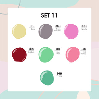 Lavis Holiday Collection: 7 Gel Polishes, 1 Base Gel, 1 Top Gel - Set 11 - 161, 043, 006, 189, 181, 170, 149 + BT