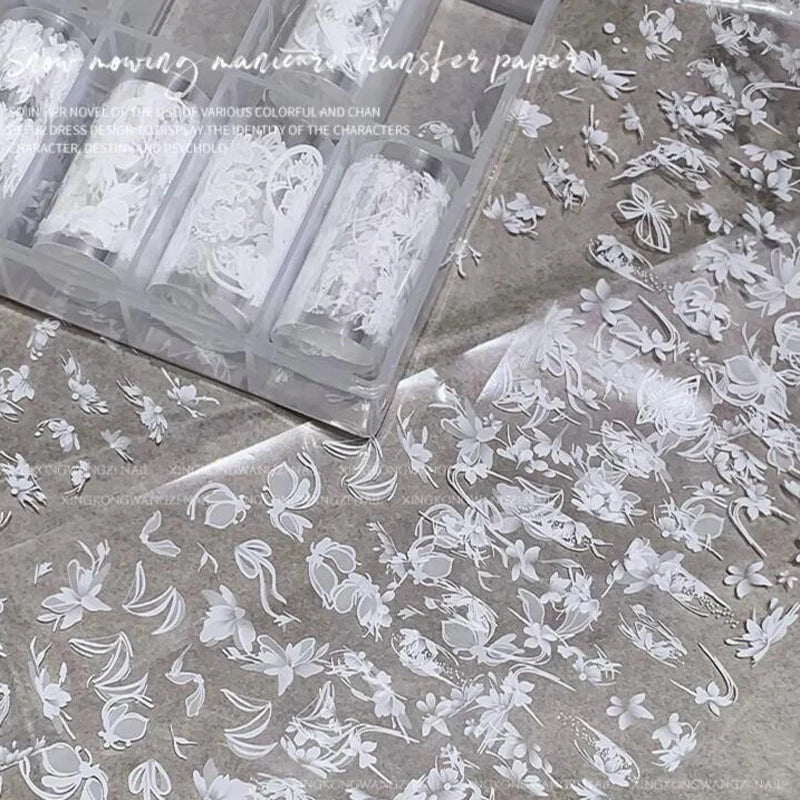 - Transparent transfer foils with clear backing, allowing you to see your nail and align the foil art with precision. Perfect for full transfer, partial transfer (allow your base color shines through or add different nail design), or mixed transfer (layering different design of nail foil together).